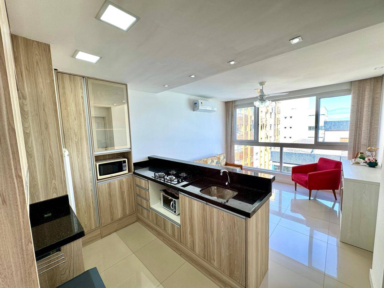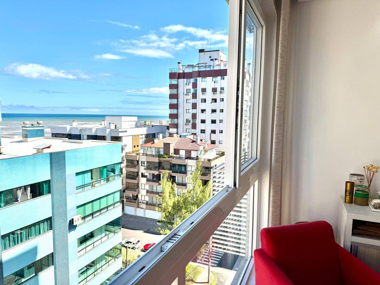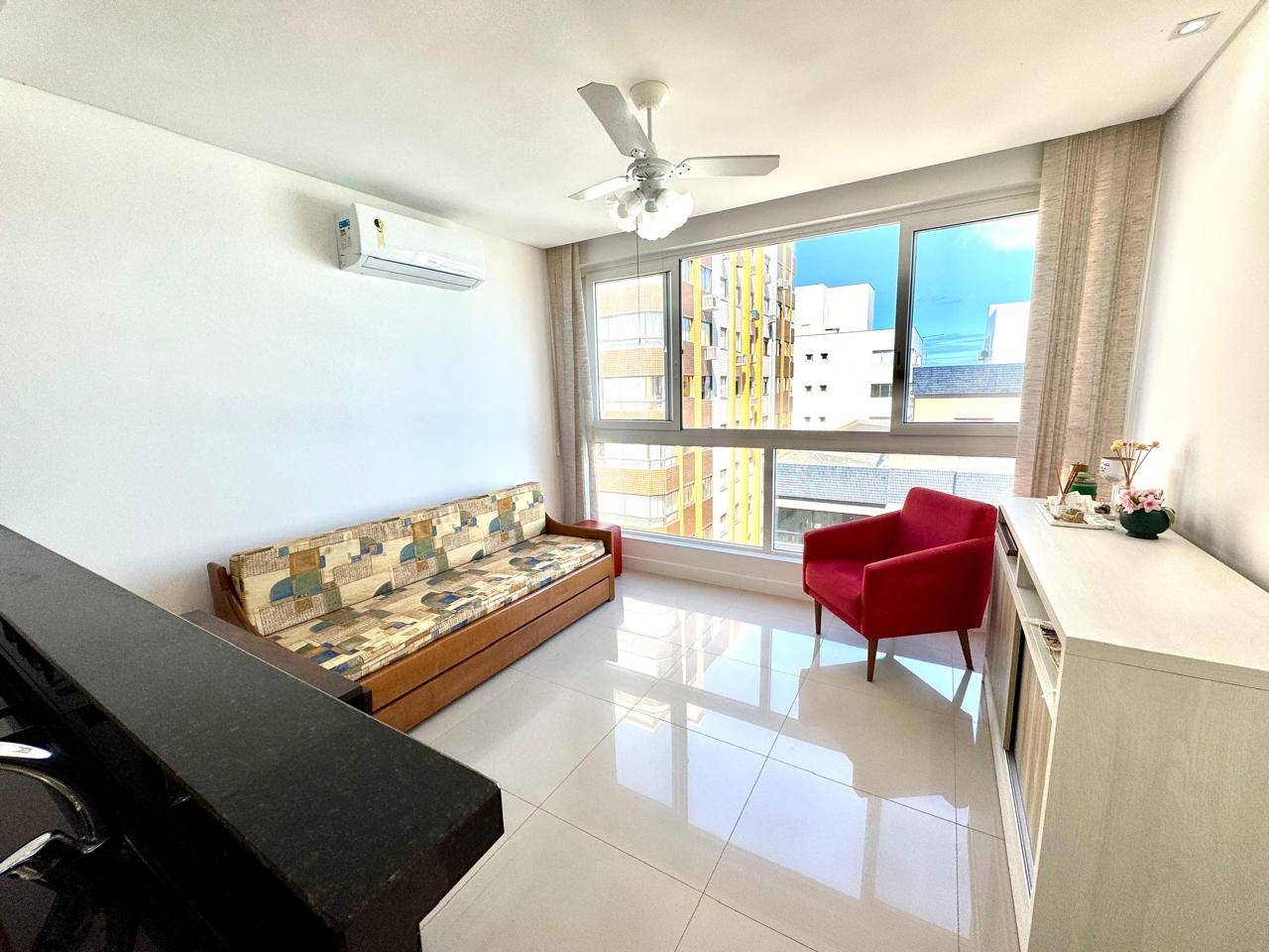Apartamento mobiliado com vista mar, junto ao Centro de Capão da Canoa! Composto 1 dormitório, banheiro social, amplo living em 2 ambientes, churrasqueira, cozinha, área de serviços e 1 box de estacionamento. Edifício de esquina, alto padrão, hall decorado, elevador, gás central, hidrômetro individual, porteiro eletrônico e zeladoria permanente. Localizado junto ao Centro de Capão, apenas 1 quadra do mar e junto a Praça do Farol e Praça Luis Bassani e próximo a todo comércio. Agende sua visita agora mesmo!