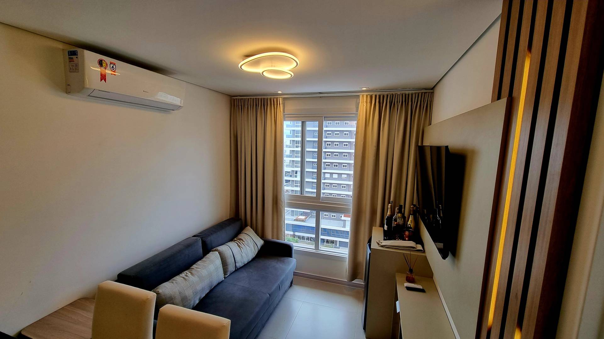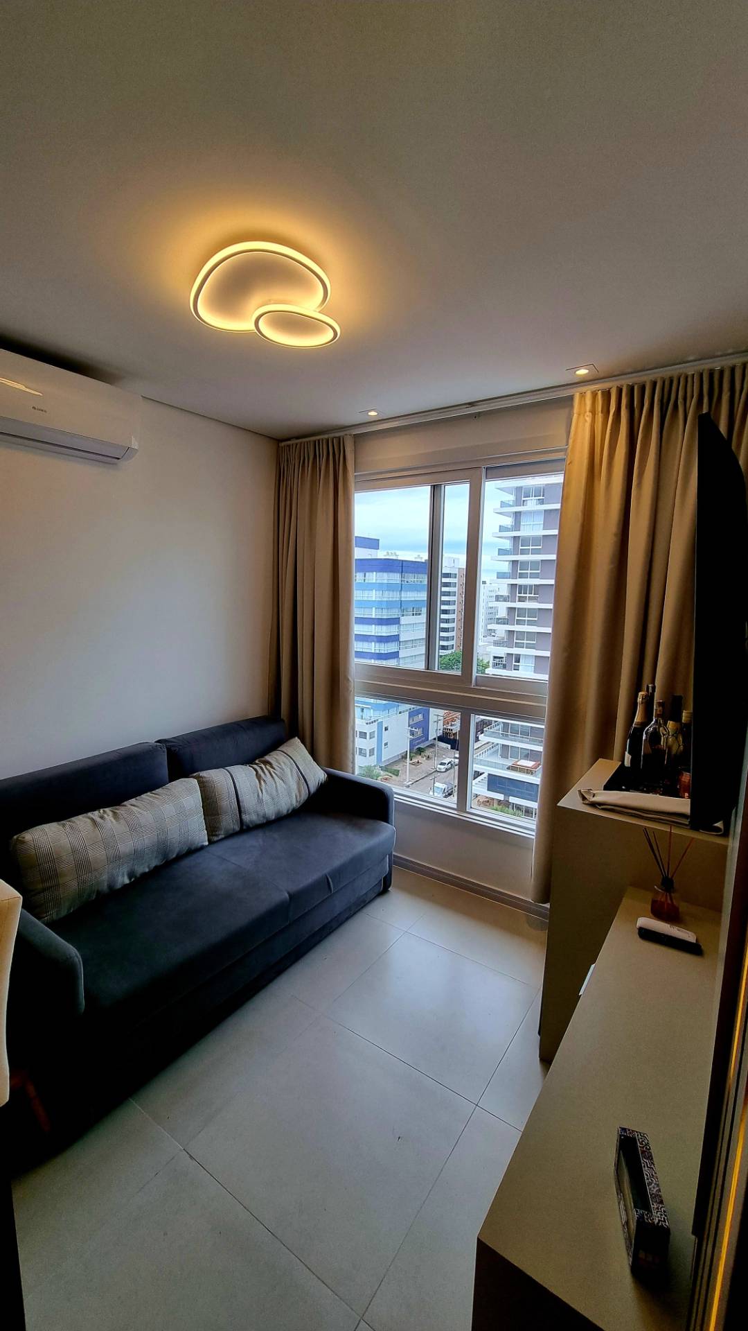 ROOFTOP COMPLETO! Belíssimo apartamento finamente mobiliado e decorado de 1 dormitório com sacada integrada, cozinha americana, ar condicionado, Juncker instalada, piso porcelanato, rebaixo em gesso, móveis sob medida, todo decorado, vista liberada e vaga de garagem. Edifício novo alto padrão com rooftop completo (piscina, academia, espaço gourmet, lounge a céu aberto. Localizado no bairro mais nobre da cidade, no bairro navegantes, divisa com Atlântida e a poucas quadras do mar. Agende agora mesmo uma visita.