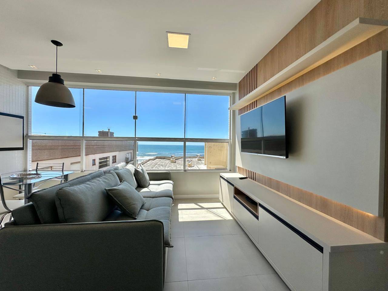 Belíssimo apartamento com sacada integrada e churrasqueira com vista para o mar. Composto por 2 dormitórios sendo uma suite e banho social, living 2 ambientes, uma linda vista para o mar, finamente mobiliado, moveis sob medida, luminárias, eletros, área de serviço, vaga de garagem. Edifício novo, com 2 elevadores, hall decorado, portaria eletrônica e poucos metros da praia, perto de praças, ideal para voce curtir com sua família o que a nossa praia tem de melhor. Agende agora mesmo sua visita e não perca essa grande oportunidade