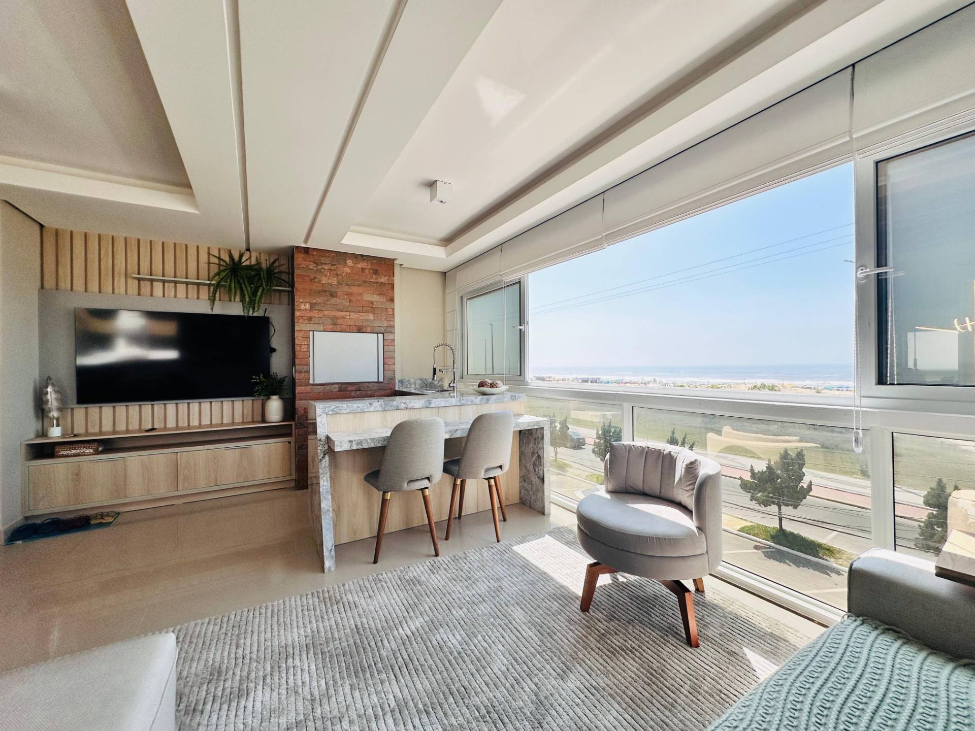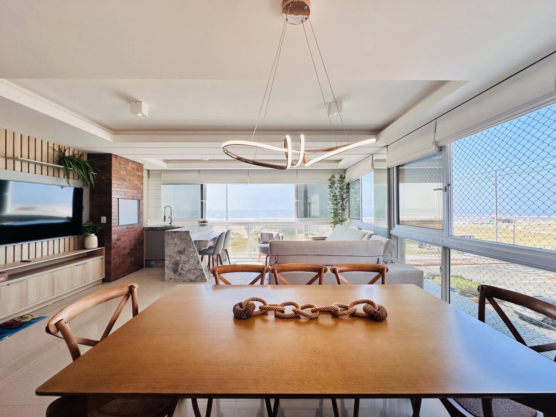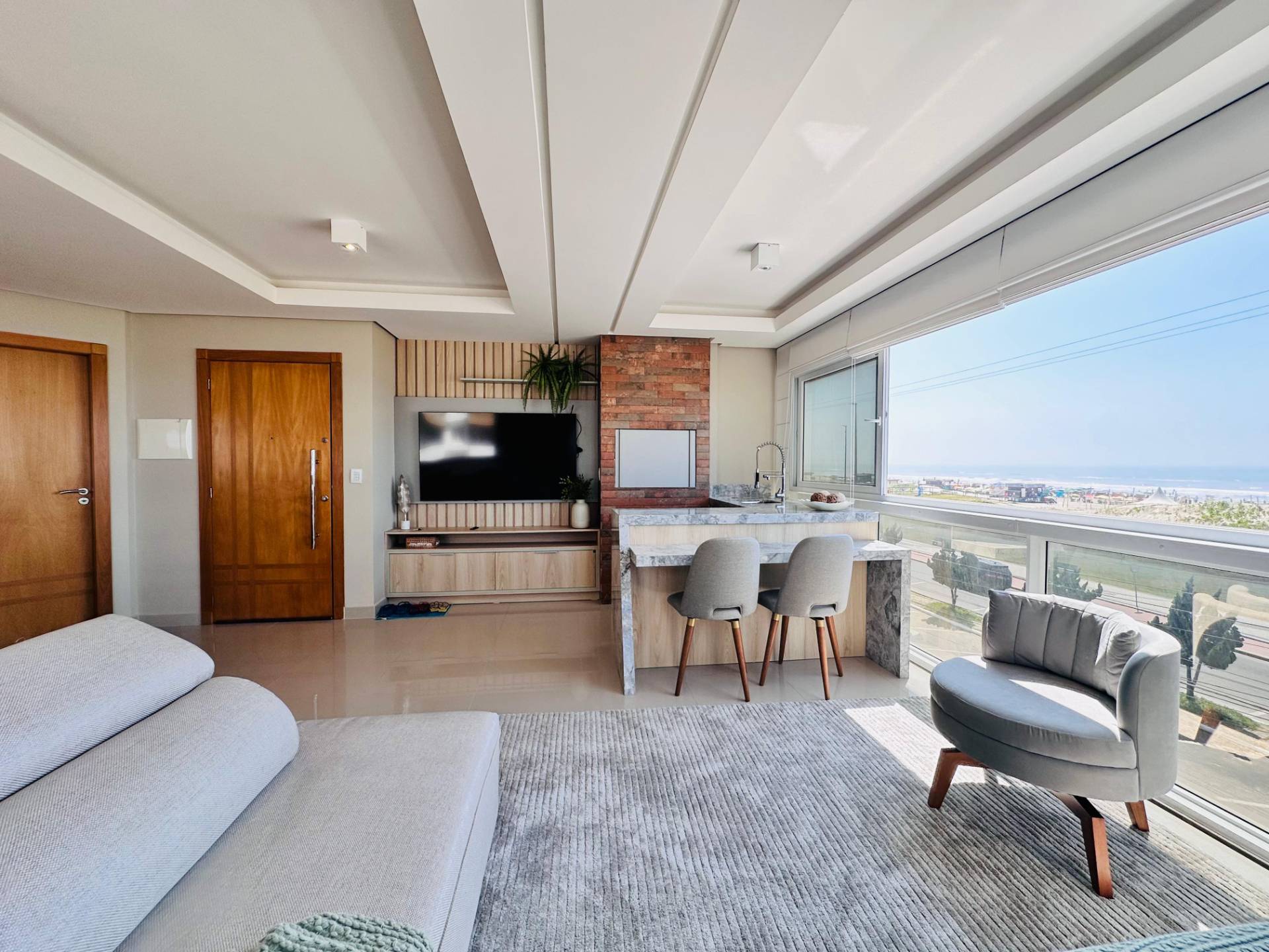 Apartamento de esquina com terraço, mobiliado, com vista eterna para o mar, à Beira Mar, no centro de Capão da Canoa! Composto por 4 suítes, lavabo, amplo living com 2 ambientes, sacada de frente integrada com churrasqueira, cozinha, área de serviços e 2 vagas de garagem. Edifício de alto luxo, 100% revestido em pastilhas, hall de entrada decorado, 2 elevadores panorâmicos, gás central, hidrômetro individual, portão e porteiro eletrônicos, zeladoria permanente. Localização privilegiada, de esquina para Avenida Principal, a poucos metros da Praça do Farol, à beira mar de Capão da Canoa. Todo conforto e sofisticação que sua família merece. Agende hoje mesmo sua visita!