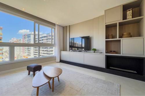 JUNTO A PRAÇA LUTERANA! ENTRADA + prazo direto de 36x. Amplo apartamento com sacada integrada de frente para praça de 3 dormitórios sendo uma suíte e uma americana finamente mobiliado e decorado, living 2 ambientes, cozinha americana, área de serviço, espera para split, agua quente e vaga de garagem. Localizado no bairro mais nobre da cidade, o bairro Navegantes a poucas quadras do mar. Edifício novo com 2 elevadores, zeladoria permanente e portaria eletrônica. Aceita seu imóvel na troca e da prazo longo direto com o proprietário. Agende agora mesmo sua visita