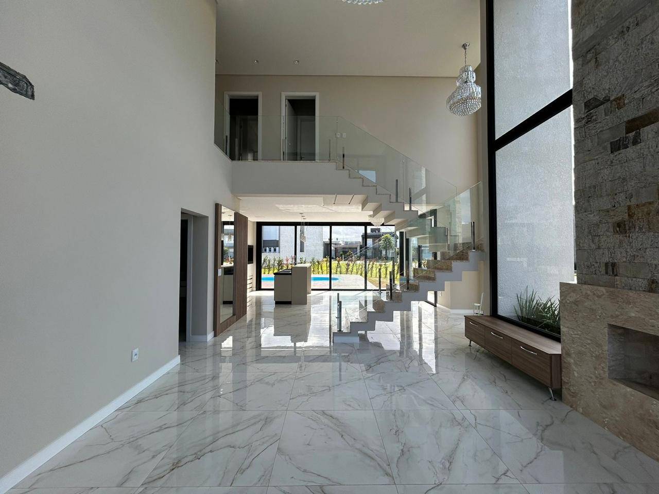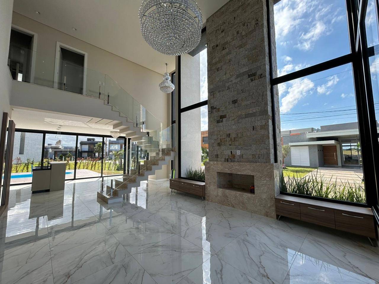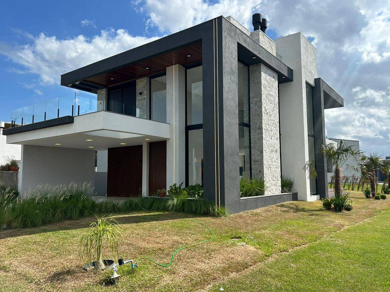 Sobrado novo, de esquina, alto padrão, com móveis fixos, junto a infraestrutura, no Condomínio Fechado Blue em Xangri-lá! Composto por 4 suítes (sendo 1 suíte térrea), lavabo, amplo living 3 ambientes com pé direito duplo, lareira, cozinha americana, churrasqueira, área de serviços, piscina com deck e abrigo para 2 carros. São aproximadamente 245m² e terreno diferenciado com 460m², alto padrão de acabamentos, piso porcelanato, rebaixado em gesso, espera para splits e água quente. Conheça o condomínio Blue em Xangri-lá, condomínio de alto padrão, com infraestrutura de lazer completa e toda segurança. Agende hoje mesmo sua visita!