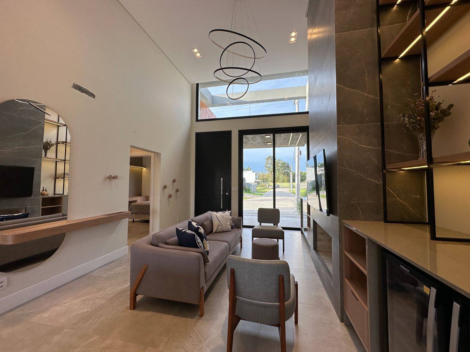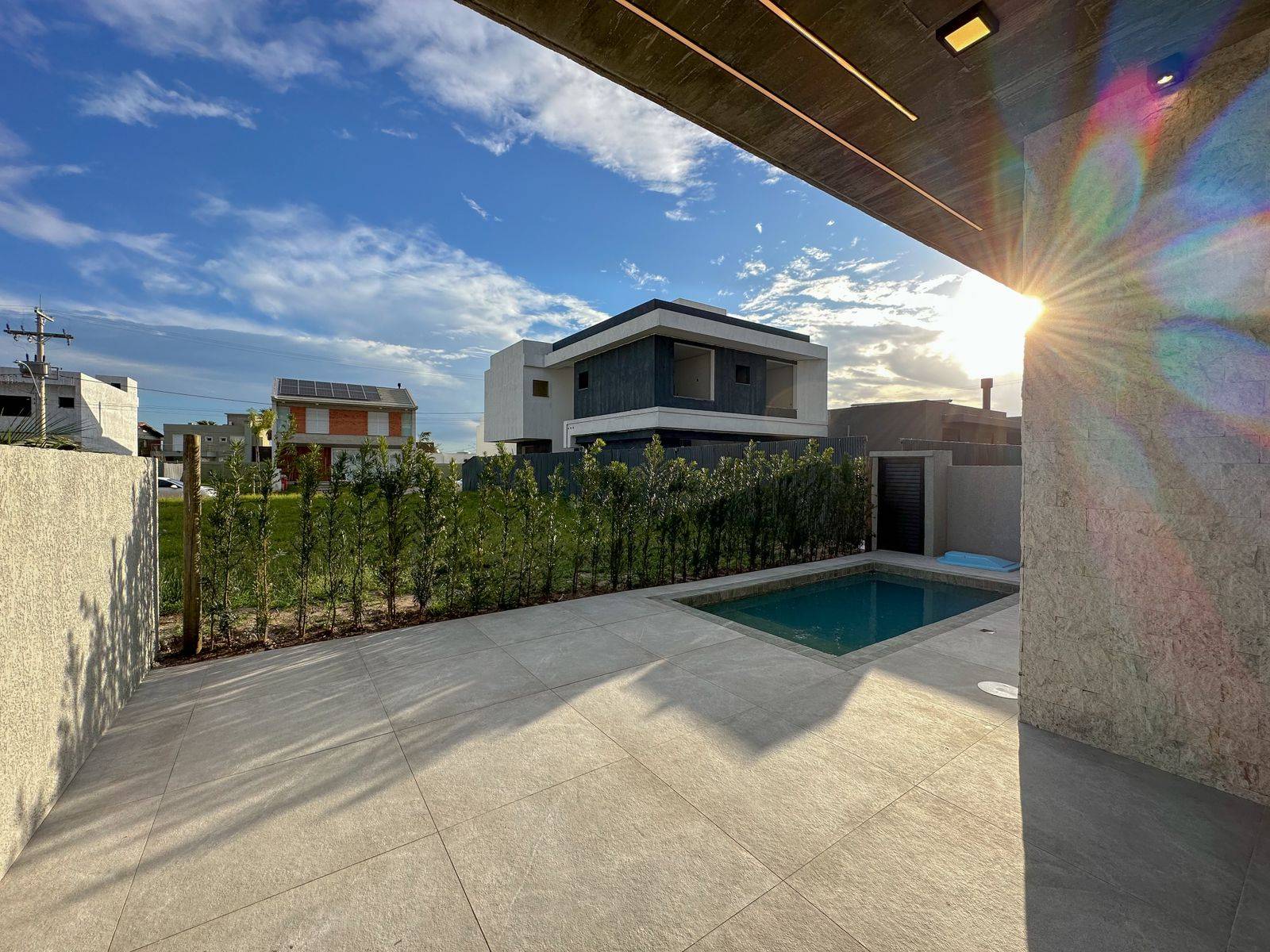 BELISSIMA CASA FINAMENTE MOBILIADA no Condomínio Sunset em Xangri-Lá Linda e Moderna essa belissima mansão é Composta por 04 amplas suítes sendo 02 americanas, living integrado 02 ambientes, lareira, lavabo, área gourmet com churrasqueira, área de serviço, garagem para 02 carros. Imóvel com 173m² piscina de concreto, pé direito alto, paisagismo, aberturas externas em alumínio preto, nova e nunca usada! Imóvel aceita carro como parte de pagamento, estuda receber imóvel em capão e prazo direto. Agende agora mesmo sua visita com um de nossos corretores