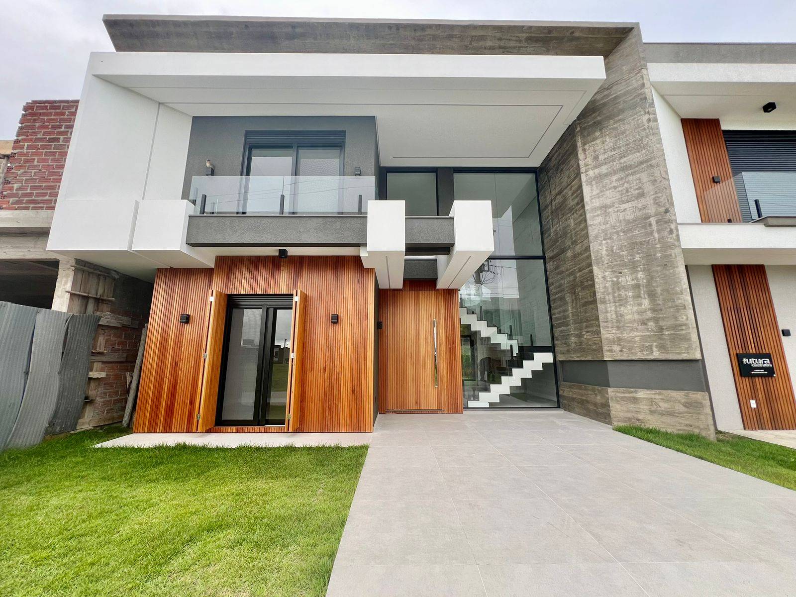 BELISSIMO SOBRADO FINAMENTE no Condomínio Sunset em Xangri-Lá Linda e Moderna essa belissima mansão é Composta por 04 amplas suítes sendo 02 americanas, living integrado 02 ambientes, lareira, lavabo, área gourmet com churrasqueira, área de serviço. Piscina de concreto, pé direito alto, aberturas externas em alumínio preto, nova e nunca usada! Condomínio fechado de alto padrão, contando com empresa de monitoramento, espaço gourmet, espaço kids, estacionamento visitantes, guarita, piscina aquecida, piscina coletiva, playground, portaria 24hs, espaço fitness, salão de festas e sala de jogos. Localização privilegiada junto a todos os recursos da cidade. Agende agora mesmo uma visita com um de nossos corretores e venha conhecer esse lindo sobrado!