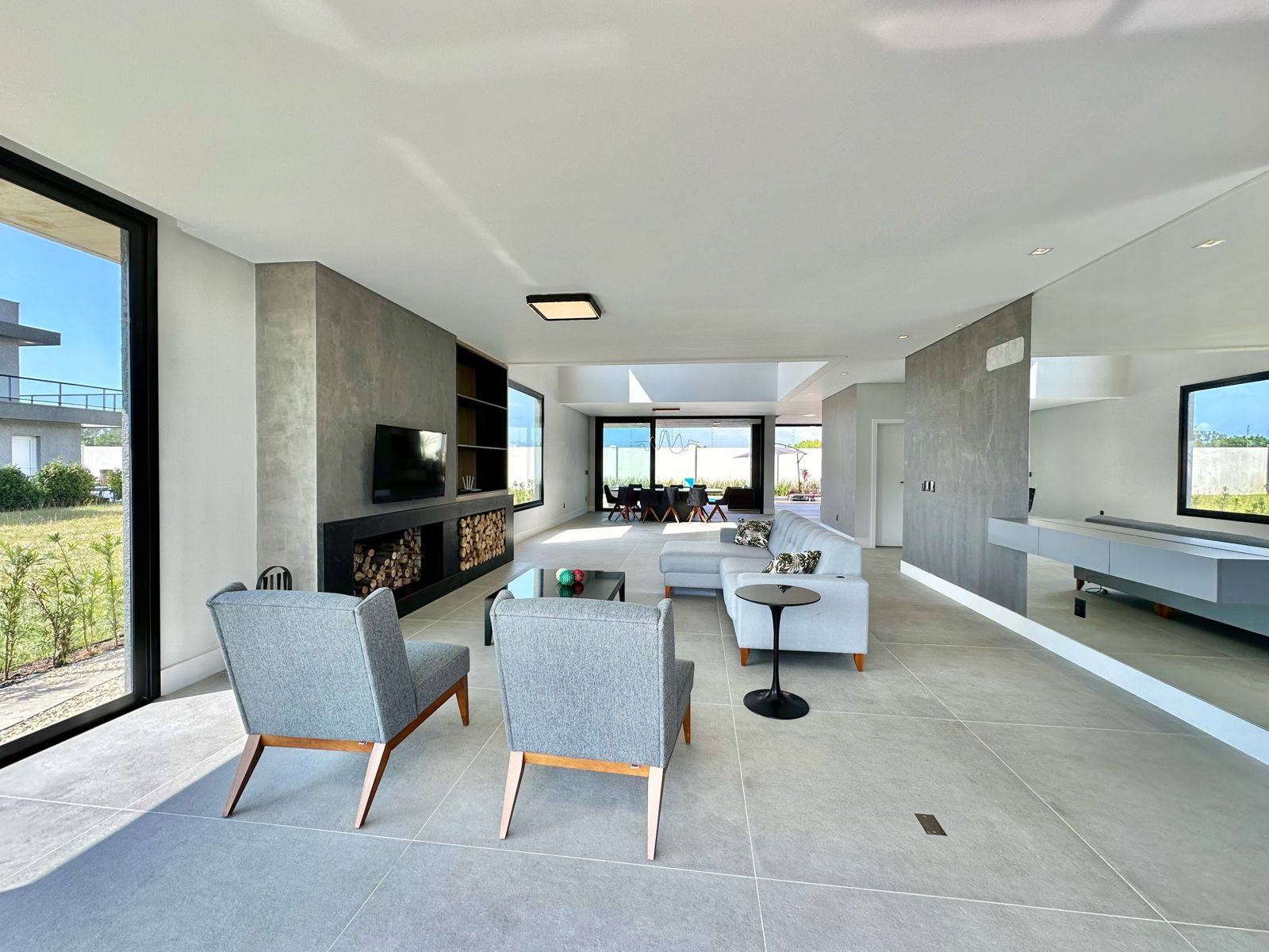 Sobrado alto padrão, finamente mobiliado, com vista mar, no condomínio fechado Costa Serena, localizado à Beira Mar de Capão Novo, em Capão da Canoa! Composta por 5 amplas suítes, lavabo, amplo living em 3 ambientes com pé direito duplo, cozinha americana, churrasqueira, chopeira, área de serviços e abrigo para até 2 carros. São aproximadamente 350m² de área construída, alto padrão de acabamentos, esperas para split, amplo pátio privativo, lindo paisagismo e piscina, pronto para veranear/morar. Super oportunidade para você desfrutar momentos inesquecíveis com sua família, em um dos melhores condomínios do litoral gaúcho, localizado à beira Mar da cidade. Venha conhecer este magnífico sobrado, marque uma visita com um de nossos corretores, será uma honra para nós atender você e sua família.
