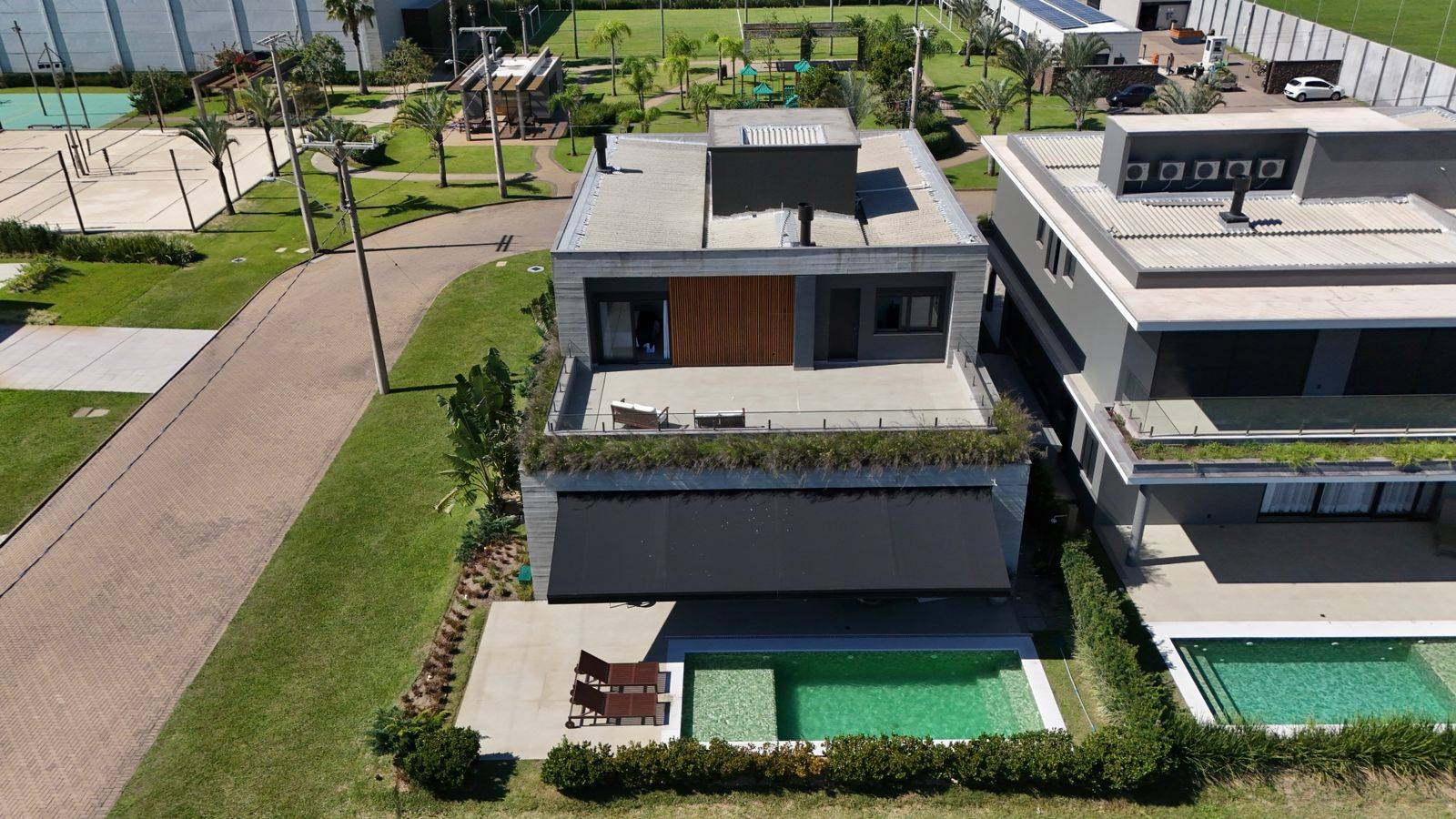 Sobrado de esquina, condomínio fechado de alto padrão, 5 suíte individuais, sendo uma térrea, living em 3 ambientes, terraço com vista privilegiada da lagoa, escritório office, cozinha gourmet com living integrado, completa e planejada, piscina em alvenaria com aquecimento, espaço adega, lavabo, varanda aos fundos, área de serviço separada, dependência de empregada, deposito, ambientes climatizados, paisagismo iluminado, espera para carga de carro elétrico, automação em toda a área social, jardim e persianas do 2º pavimento, esquadrias PVC com mosquiteiro, suíte máster com banheira casal de hidromassagem e cama king com massagem, com 440m² de área privativa, agende sua visita com nossos corretores!